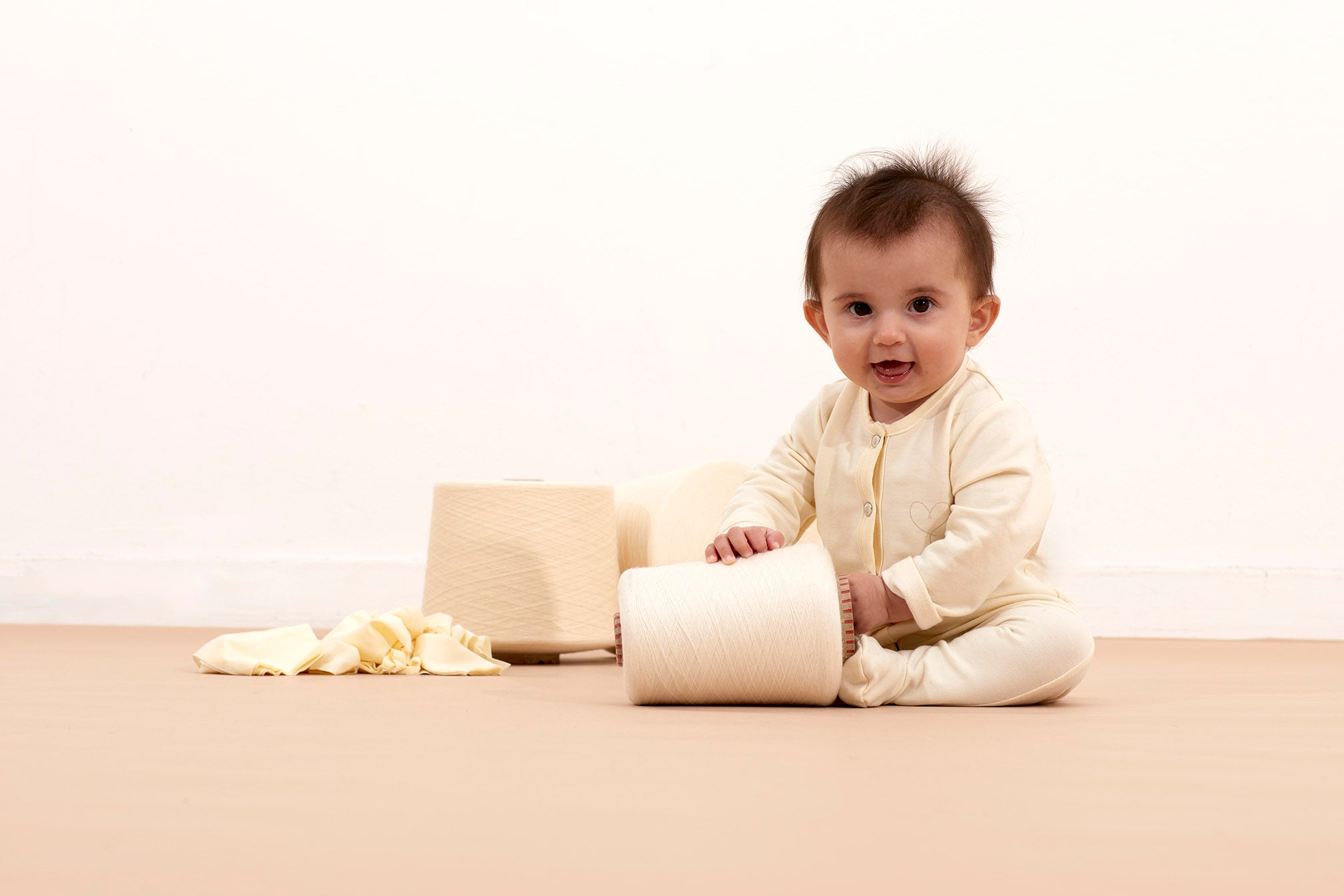 Every year, billions of liters of milk are wasted worldwide — our baby line is produced in Italy from this precious resource. 100% natural milk protein viscose, free of colorants, gives the fabric its natural ivory hue, reflecting the serenity and harmony of nature.